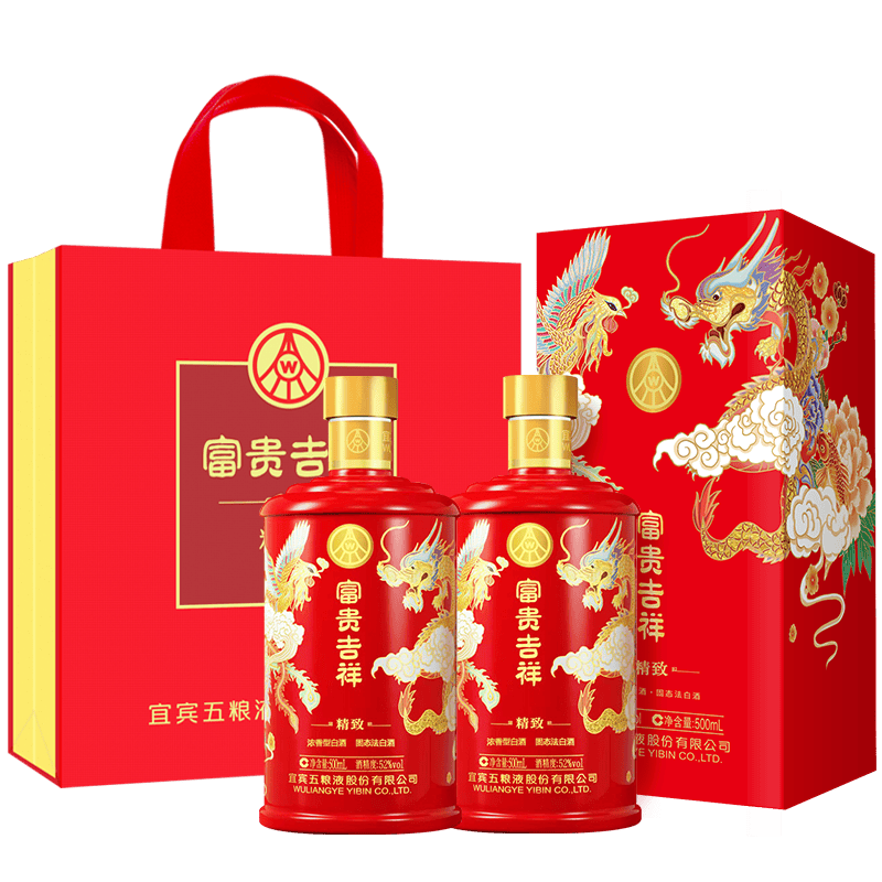这款酒的核心卖点在于其高端的品牌形象和文化渊源。五粮液的历史悠远长久,广受消费者认可,尤其在喜庆场合,选择五粮液能提高整体的仪式感。富贵吉祥的命名,寓意着美好的祝愿,深受年轻人和中年人的青睐。